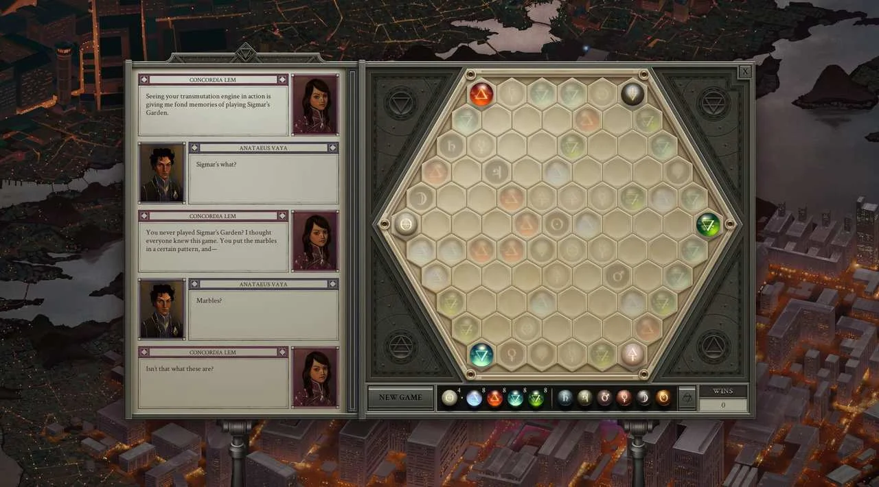 Uwielbiasz mahjonga? W Opus Magnum znajdziesz tryb Sigmar's Garden – dopasowuj symbole żywiołów i znikaj, aby oczyścić planszę. To może być zabawne wyzwanie!