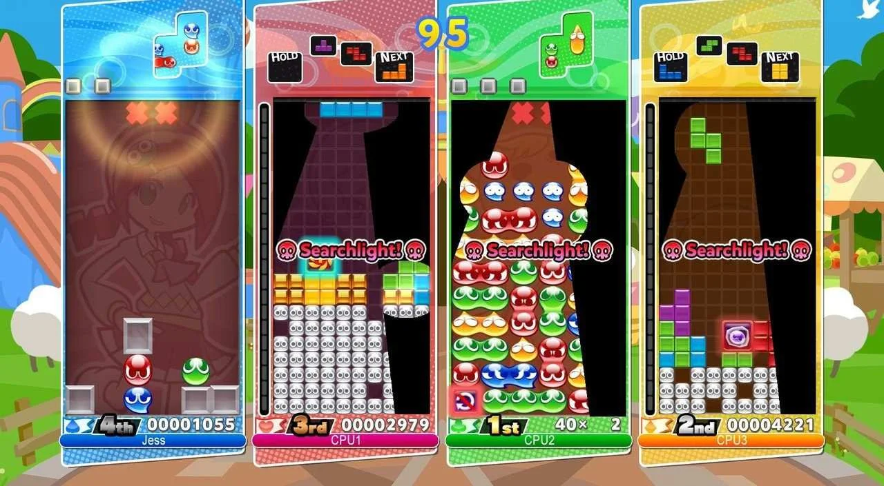 W Puyo Puyo Tetris gracze łączą ze sobą spadające kolorowe klocki. Stwórz figury z przynajmniej czterech takich samych bloków i zdobywaj punkty. Proste, prawda? A co jeśli dodasz do tego rywalizację? Wtedy robi się naprawdę ciekawie!