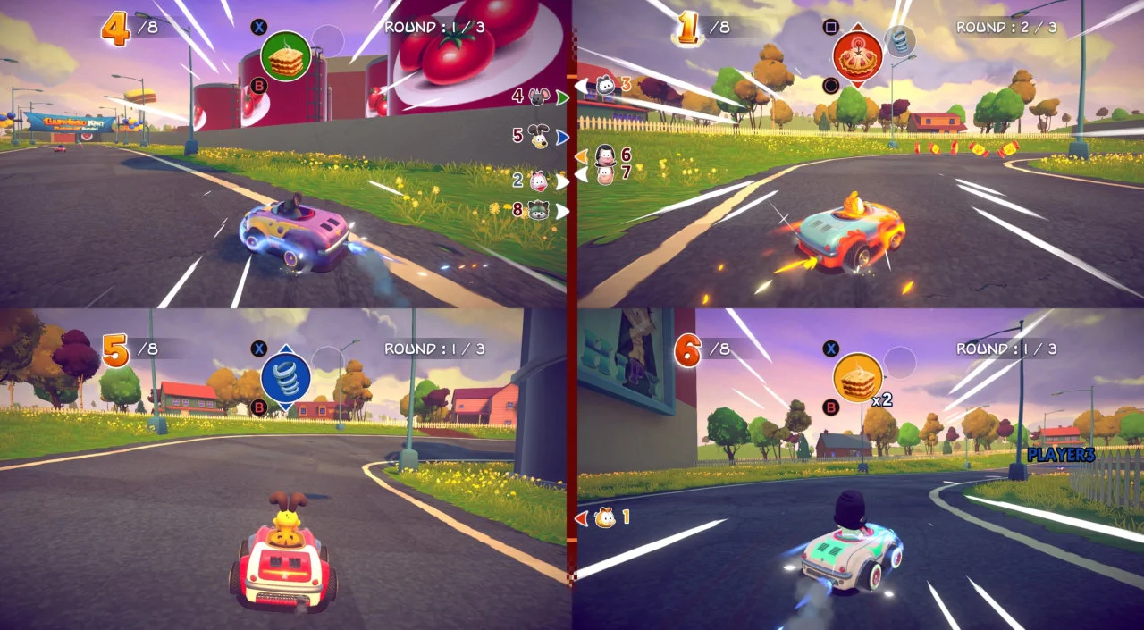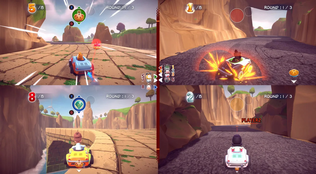 W Garfield Kart Furious Racing mamy do dyspozycji aż szesnaście różnych tras. To nie jest żaden spacerek po parku! Warto wspomnieć, że do wyboru mamy zarówno tryb single, jak i multiplayer. Rozgrywka wieloosobowa może toczyć się przez internet lub na podzielonym ekranie. Idealne na wieczorne zmagania z przyjaciółmi! Podobne szaleństwo oferują inne gry wyścigowe jak All-Star Fruit Racing.