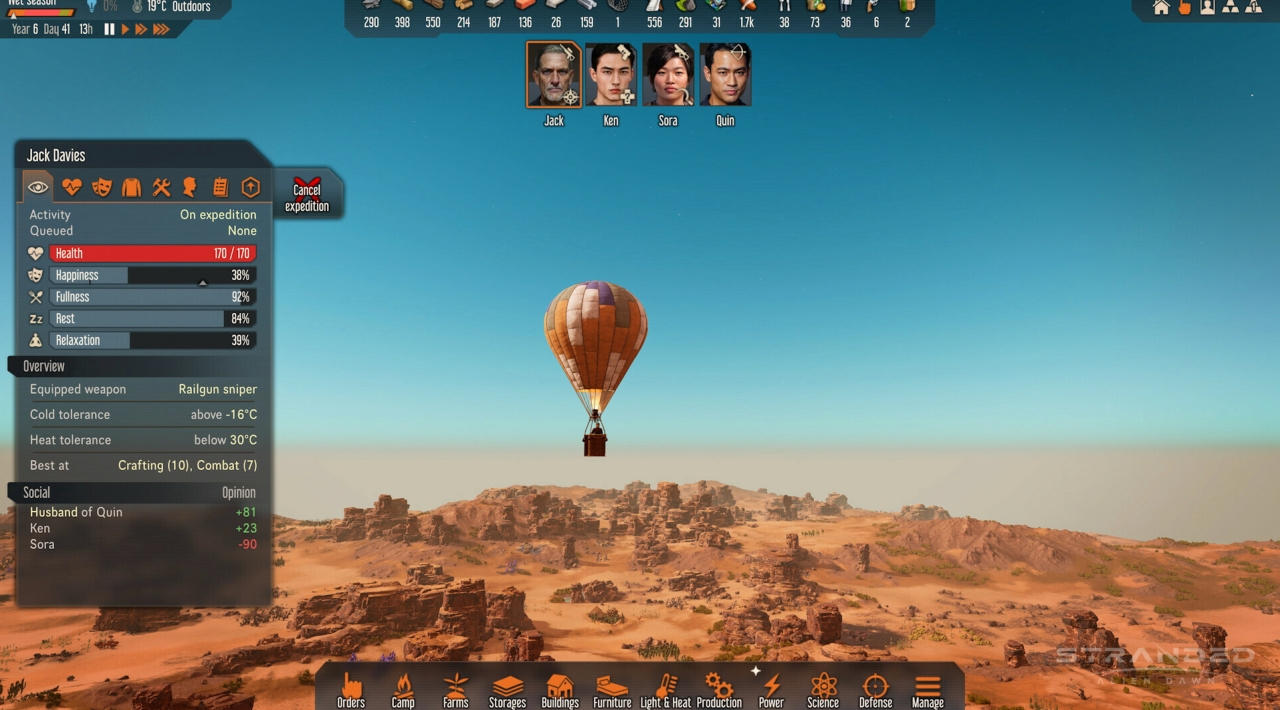 - Koloniści – każdy ma swoją historię, umiejętności i dziwactwa.