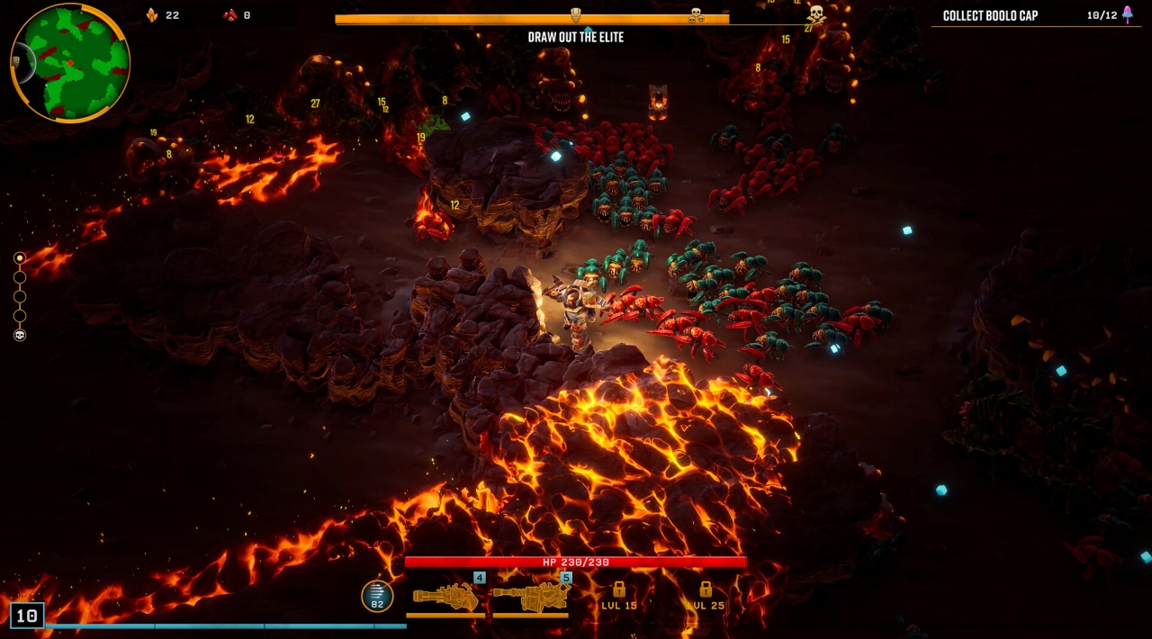 Gra to roguelite z widokiem z góry. Kopiesz tunele, wydobywasz minerały, a w tym samym czasie hordy obcych próbują cię rozszarpać. Broń strzela automatycznie, więc ty skupiasz się na przetrwaniu i podejmowaniu szybkich decyzji. Proste? Tak. Łatwe? Niekoniecznie.