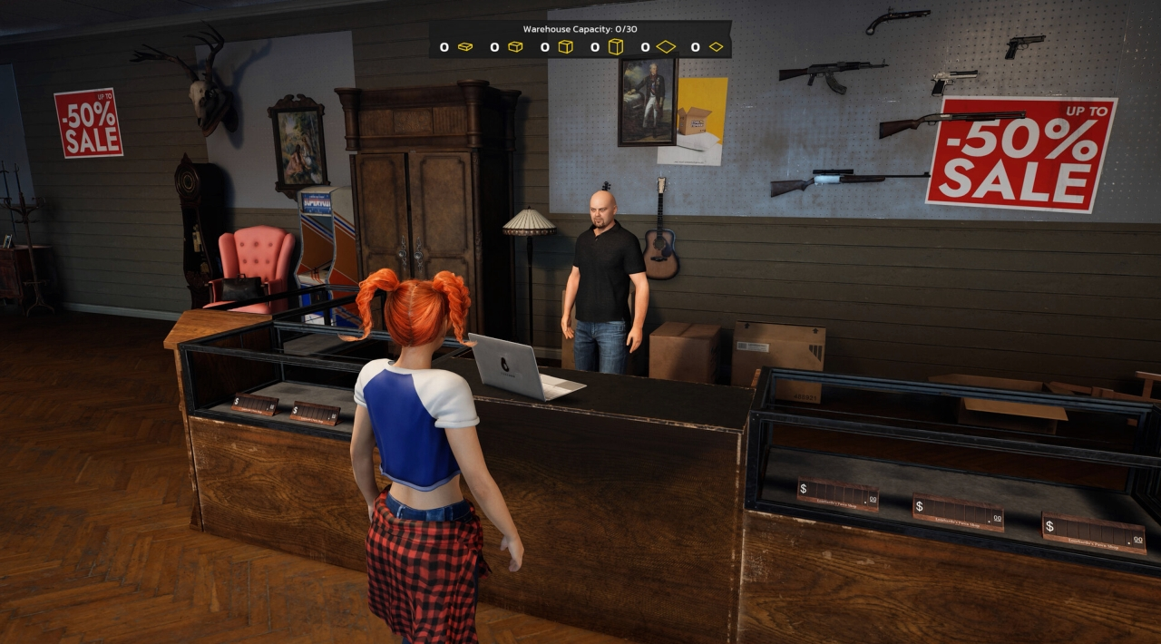 Wylicytowane rzeczy musisz spieniężyć. Robisz to, prowadząc własny lombard i rozwijając biznes w praktyczny, „hands-on” sposób. Ustawiasz ekspozycję na półkach, obsługujesz klientów NPC i targujesz się o cenę. Do tego dochodzą ulepszenia: pracownicy, pojemność, specjalizacje w kategoriach przedmiotów. Brzmi przyziemnie? I dobrze, bo tu liczy się codzienna robota i kasa w kasie. Podobnie jak w Car Dealer Simulator, gdzie targujesz się o auta.