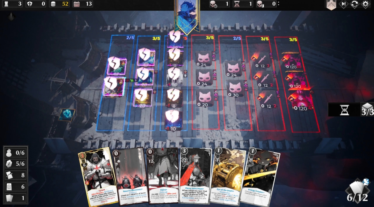 Grasz w turach. W każdej turze decydujesz, czy atakujesz, czy ustawiasz swoje oddziały i budujesz obronę. Jest haczyk: mróz jest tak bezlitosny, że twoje jednostki po jednej turze muszą się wycofać. Zostają więc przede wszystkim te elementy, które potrafią przetrwać - solidne struktury i najsilniejsi wojownicy. To wymusza planowanie, a nie tylko reagowanie na to, co akurat wypadło z talii.