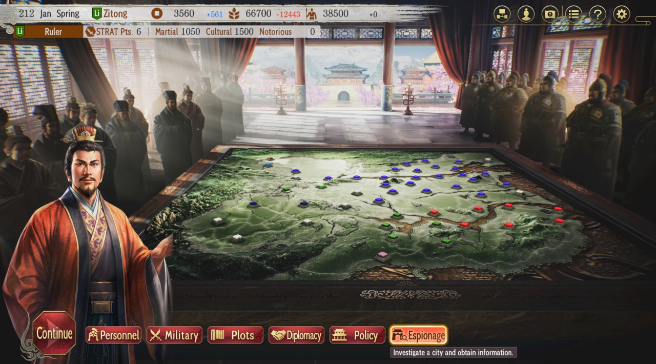 Startujesz w świecie, gdzie trzy dynastie - Wu, Wei i Shu - walczą o dominację polityczną i militarną. Ty przejmujesz kontrolę nad jednym z wodzów i podejmujesz decyzje, które mają realny wpływ na układ sił. Gra jest nastawiona na singleplayer i prowadzi rozgrywkę w turach. Jedna tura to jeden miesiąc. Brzmi niewinnie, ale miesiące uciekają szybko, gdy próbujesz ogarnąć wszystko naraz.