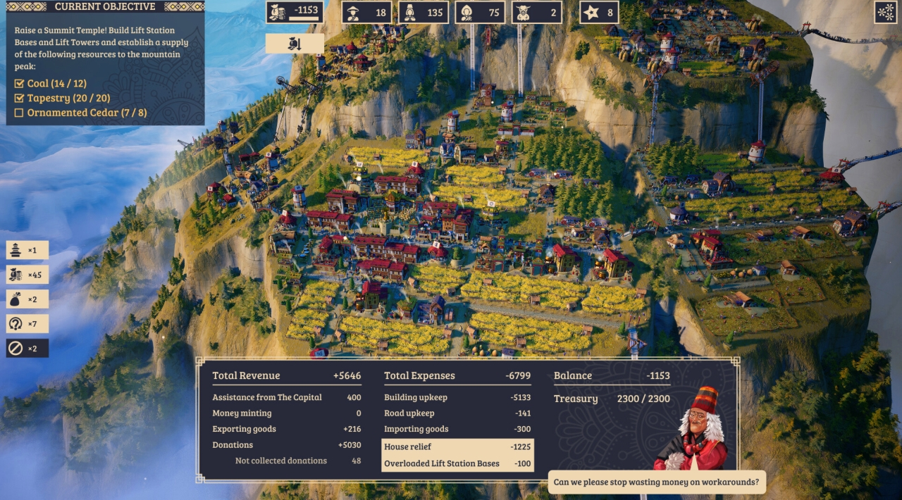 W Laysara Summit Kingdom transport jest jednym z głównych bohaterów rozgrywki. Na łagodniejszym terenie wystarczą sensownie wytyczone drogi. Ale kiedy góra jest poprzecinana rzekami, kanionami i pełna klifów, wchodzisz na wyższy poziom kombinowania.