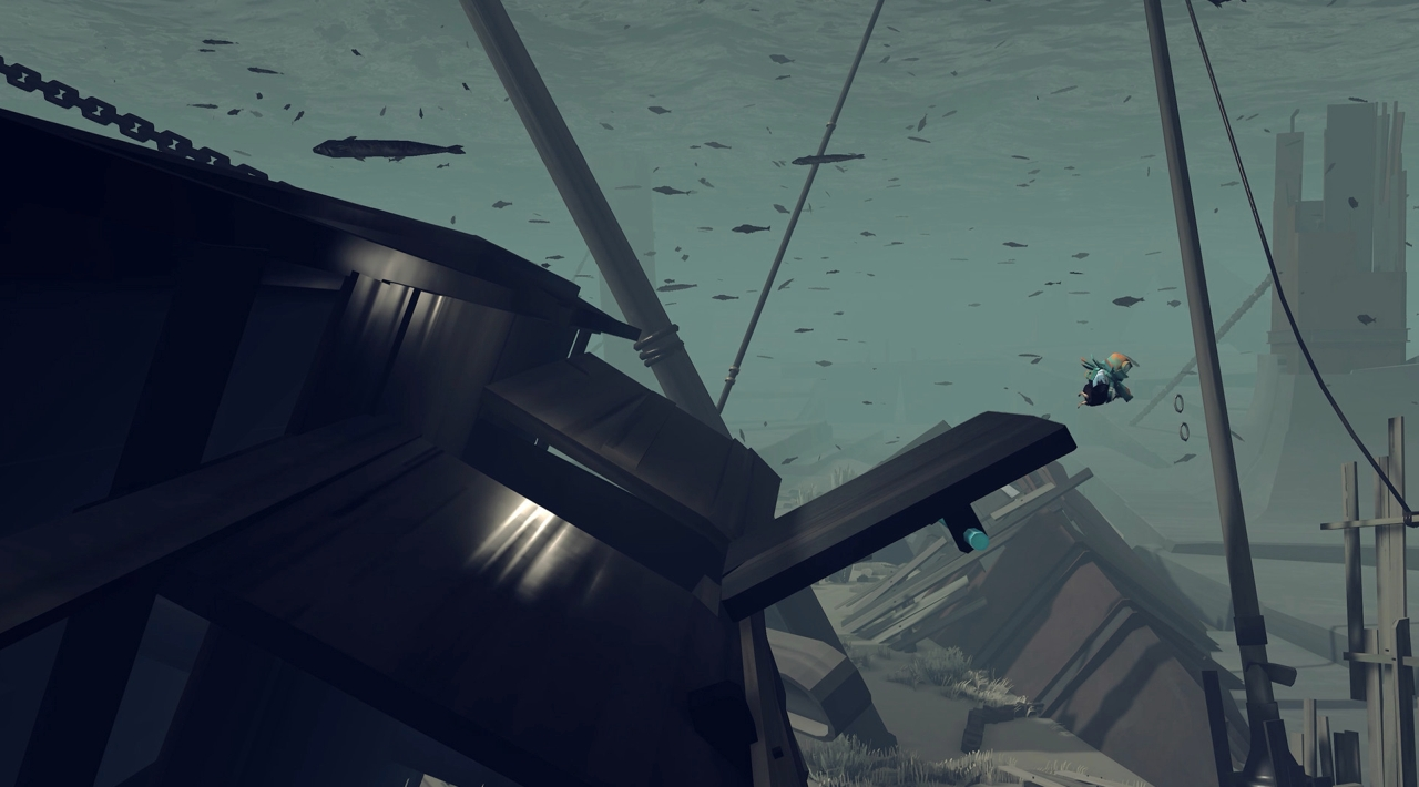 Akcję oglądasz z boku, a trzon zabawy stanowi obsługa statku i przemierzanie zalanych terenów. Płyniesz przez ruiny dawnej cywilizacji, zatopione enklawy, doliny i dorzecza. Po drodze nie tylko przesuwasz się naprzód, ale też dbasz o to, by twoja maszyna w ogóle działała. Trzeba uruchamiać urządzenia, pilnować sprawności okrętu i reagować na problemy. Niby spokojnie, ale bez bezmyślnego płynięcia przed siebie.