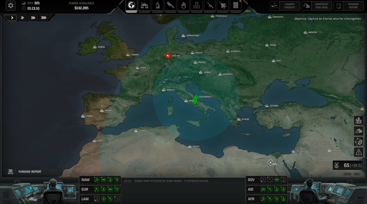 W kampanii działasz na skalę globalną. Budujesz i rozwijasz kilka baz w różnych częściach świata, dobierasz ich specjalizacje i planujesz zasięg reakcji. Ma to znaczenie, bo zagrożenia pojawiają się w wielu miejscach, a twoje lotnictwo i transporty mają ograniczenia. Dobra organizacja zaplecza naprawdę robi różnicę. Czasem bardziej niż nowa broń.
