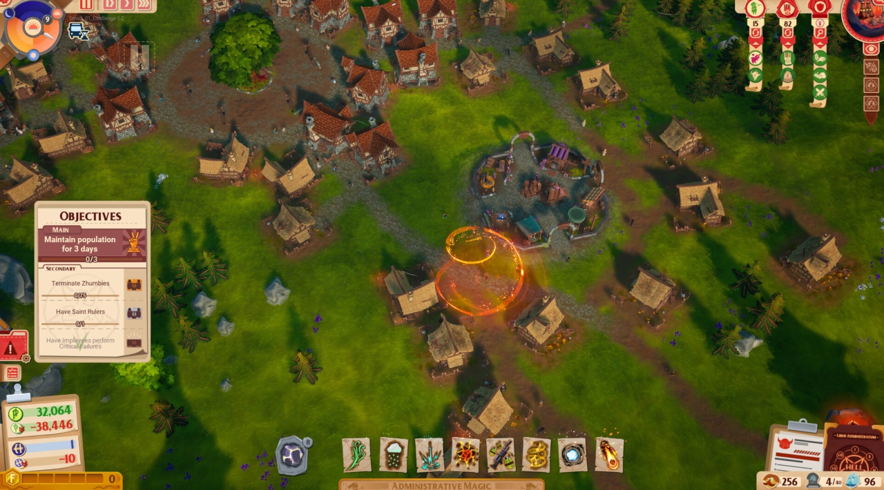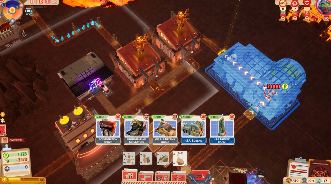 Rozwój piekła opiera się na utrzymywaniu odpowiednich wskaźników wydajności i generowaniu zysków. Dzięki temu wznosisz kolejne struktury, łączysz je drogami i zatrudniasz coraz bardziej wykwalifikowanych pracowników. Im lepiej działa cały system, tym sprawniej przebiega praca nad potępionymi duszami, przypominając zarządzanie imperium w steampunkowym Kaiserpunk.