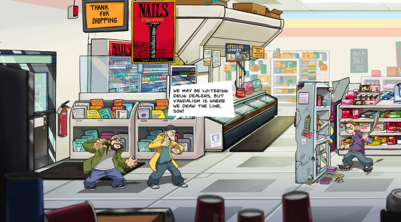 Jay and Silent Bob Chronic Blunt Punch to dwuwymiarowy beat 'em up oparty na bohaterach znanych z filmu Jay i Cichy Bob kontratakują. Wchodzisz tu w buty Jaya i Cichego Boba i po prostu ruszasz przed siebie - przez miasto, przez tłum przeciwników, prosto do mistycznego centrum handlowego. Brzmi absurdalnie? Trochę tak. I właśnie o to chodzi.