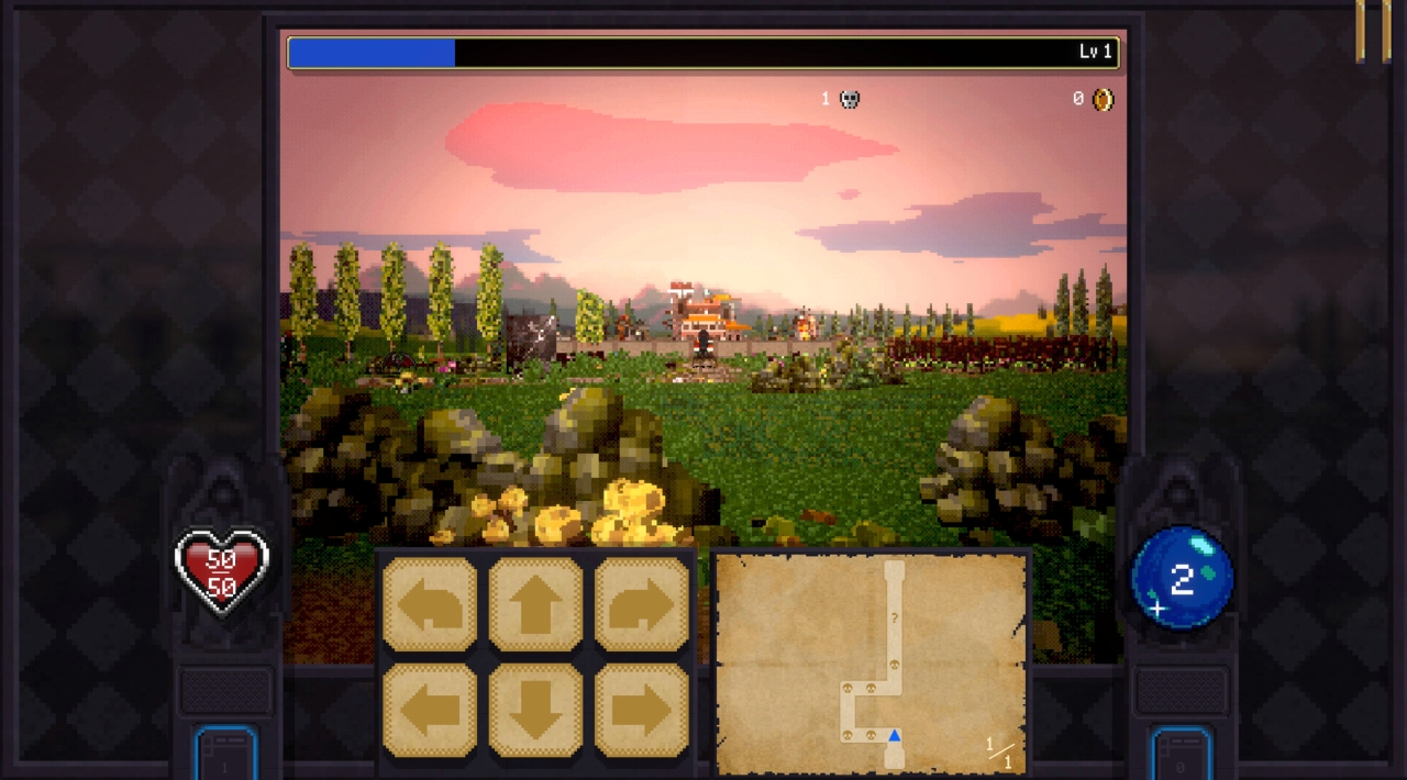 Eksplorujesz wielopoziomowe lochy znane z Vampire Survivors, przemierzasz ich korytarze i przygotowujesz się do następnych starć. Rozgrywka jest prowadzona w FPP, więc kontakt z dungeon crawlerowym klimatem jest bezpośredni. Po drodze trafiasz na skrzynie, zdobywasz klejnoty oraz różne wzmocnienia, a potem próbujesz zejść jeszcze głębiej. Między wyprawami wracasz do wioski, która działa jak baza wypadowa przed kolejnym podejściem.