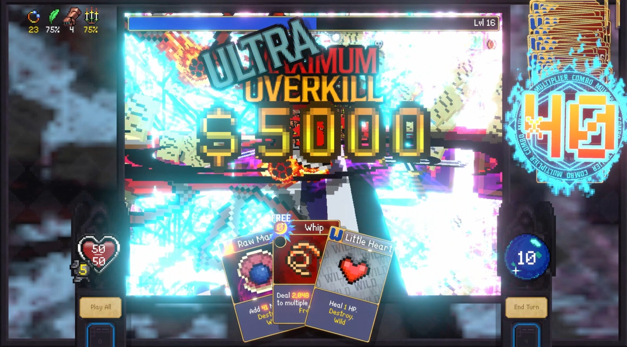 W miarę postępów zdobywasz doświadczenie, awansujesz na kolejne poziomy i poszerzasz talię o nowe karty. Gra pozwala też rozwijać broń oraz przyzywać ocalałych, co otwiera dostęp do kolejnych efektów i interakcji. Zbierane po drodze klejnoty i power-upy dodatkowo wzmacniają twoje możliwości, więc z czasem budujesz coraz bardziej konkretny styl gry.