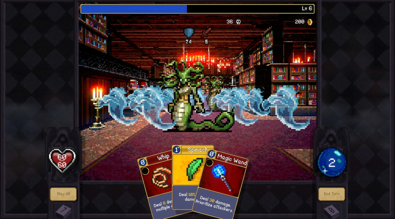 Dochodzi do tego system Dzikich Kart, które pozwalają wydłużać łańcuch akcji. W efekcie możesz tworzyć coraz dłuższe kombosy i wyciągać z talii maksimum potencjału. Jeśli lubisz moment, w którym dobrze złożona sekwencja nagle robi absurdalnie dużo, to tutaj takich sytuacji nie brakuje. Taki mały chaos, ale pod kontrolą. Podobne wampirze motywy, ale w bardziej mrocznej odsłonie, znajdziesz w Vampires Bloodlord Rising.