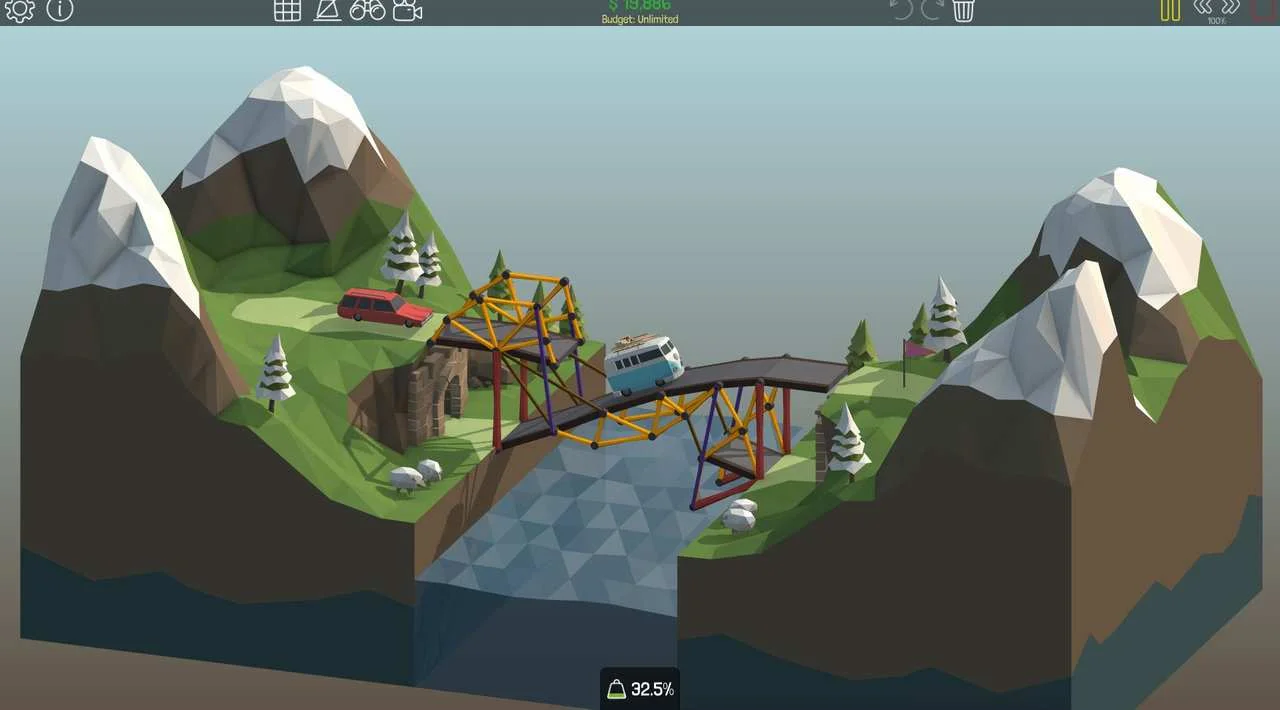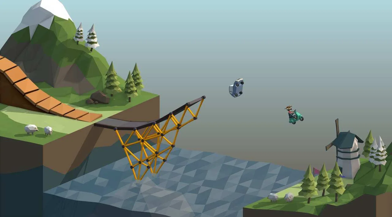 W Poly Bridge Twoim głównym celem jest zbudowanie mostu dla różnych pojazdów. Czeka na Ciebie szereg wyzwań – od prostych konstrukcji do bardziej skomplikowanych, które wymagają sprytu i kreatywności. Musisz pamiętać o ograniczonym budżecie i systemie fizycznym. Nie ma tu miejsca na błędy – jeśli most nie wytrzyma, kierowcy i pasażerowie wylądują w wodzie. Lekcja: zawsze noś ze sobą zapasowy most!